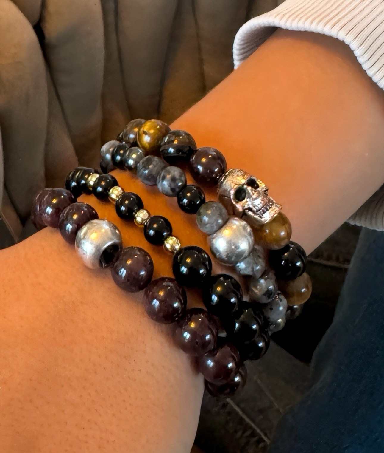 We werken enkel met echte natuurstenen, bladgoud, en de sterkste draad op de markt — elk detail zorgvuldig met de hand afgewerkt.