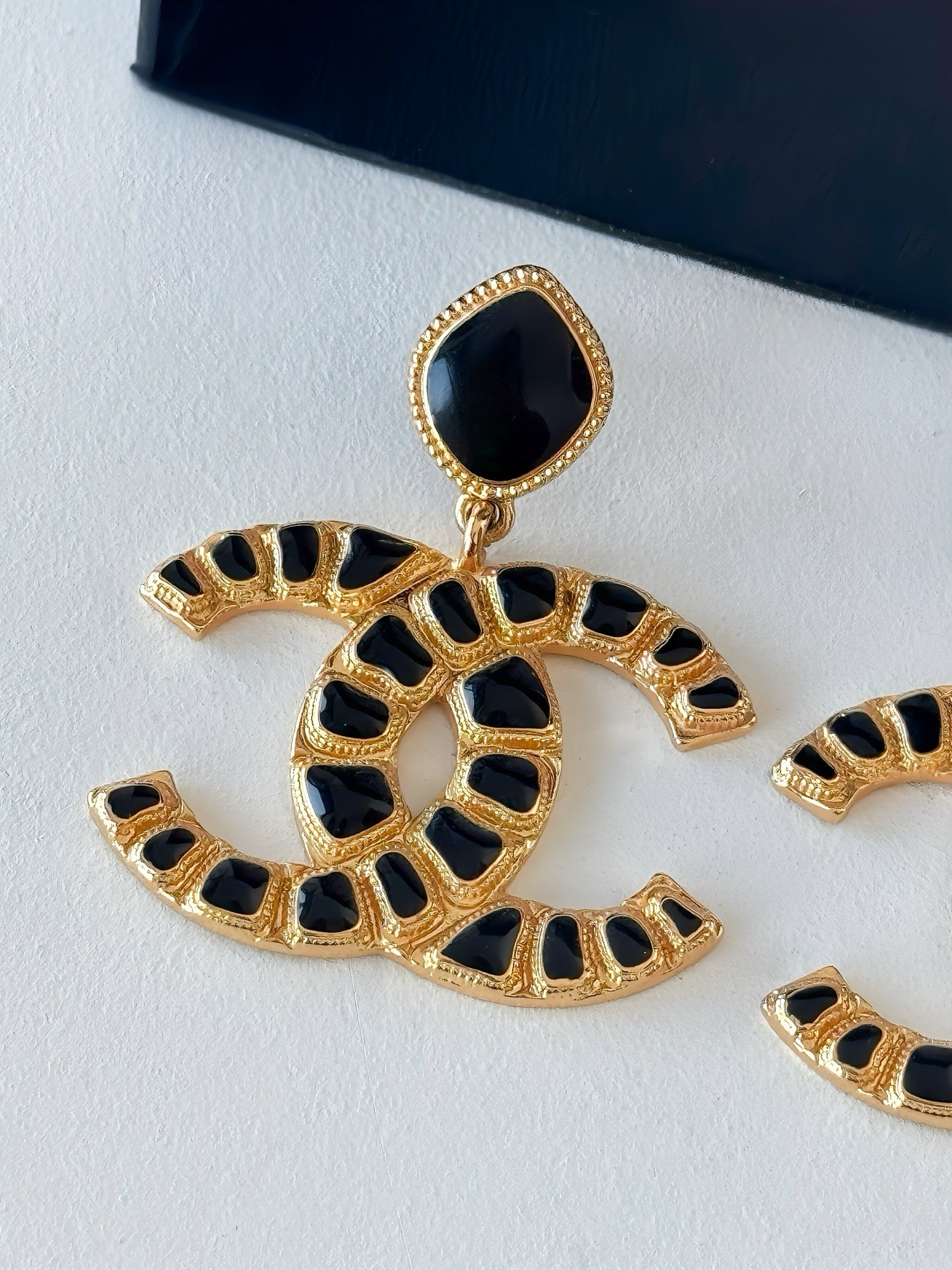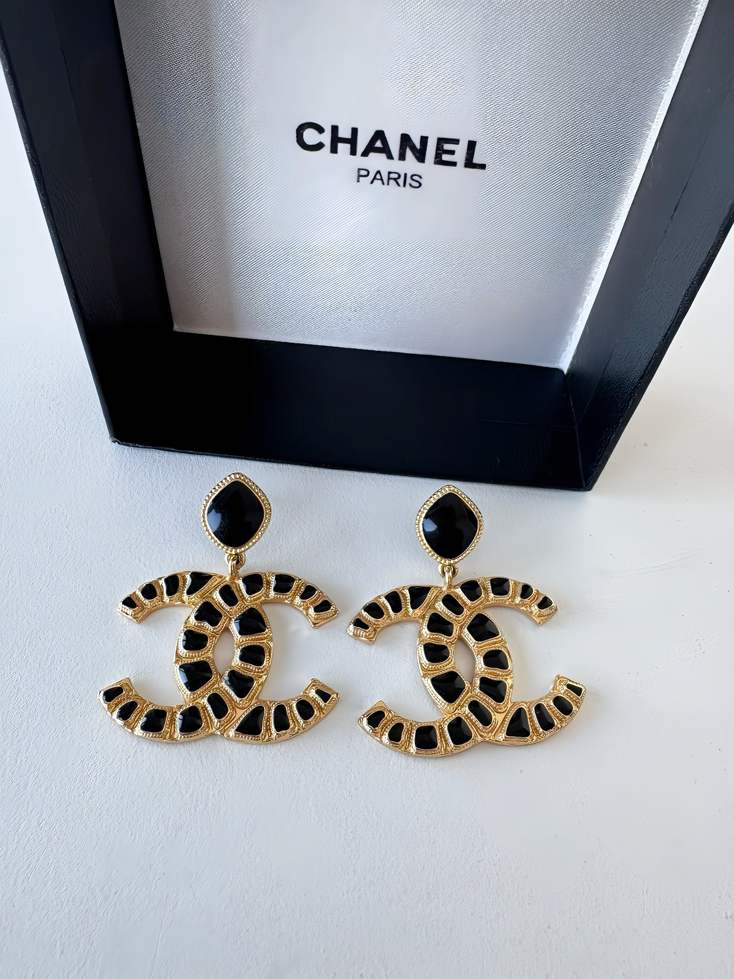 Chanel Vintage Earrings – Black & Gold Double C🖤