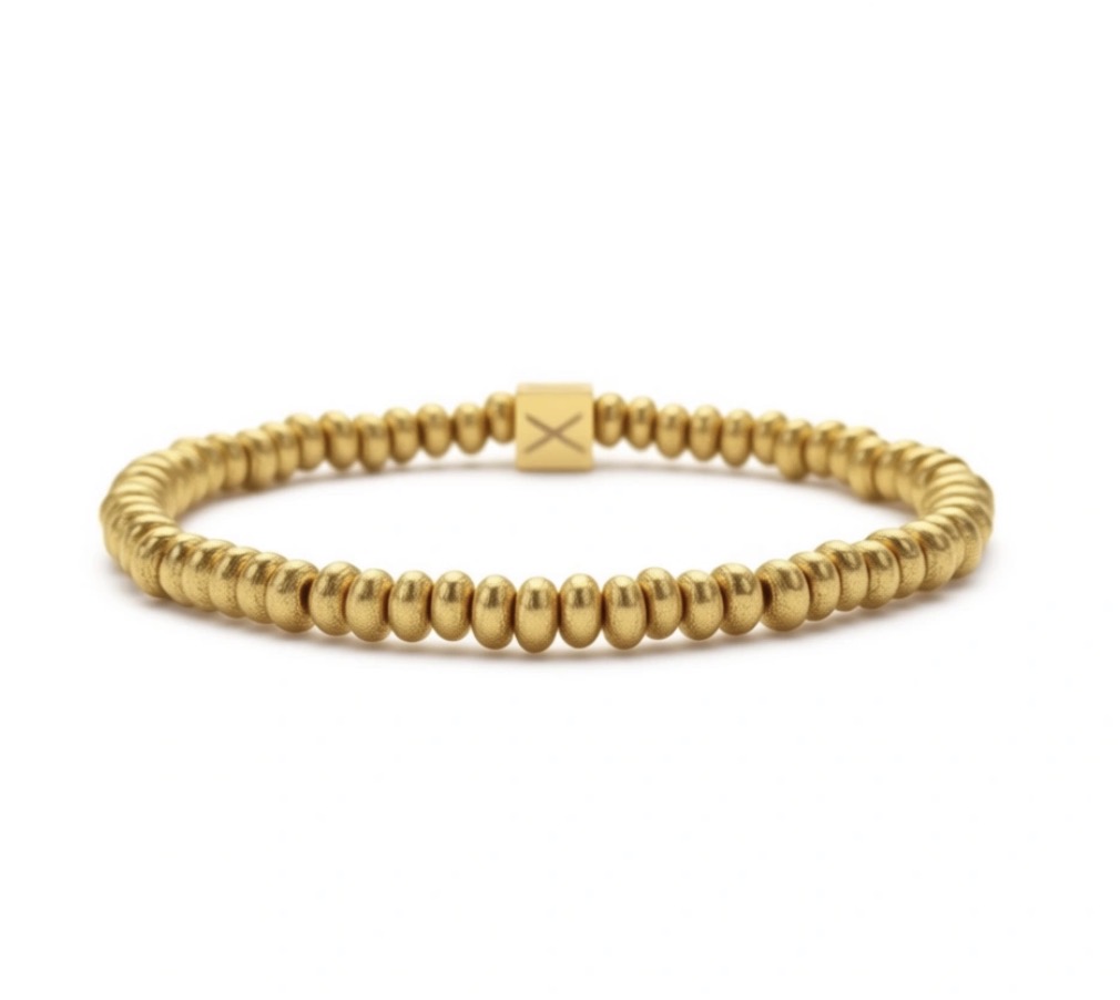 Perfect gepolijste 4mm kralen met een diepe gouden glans geven deze armband een tijdloze en luxe uitstraling.