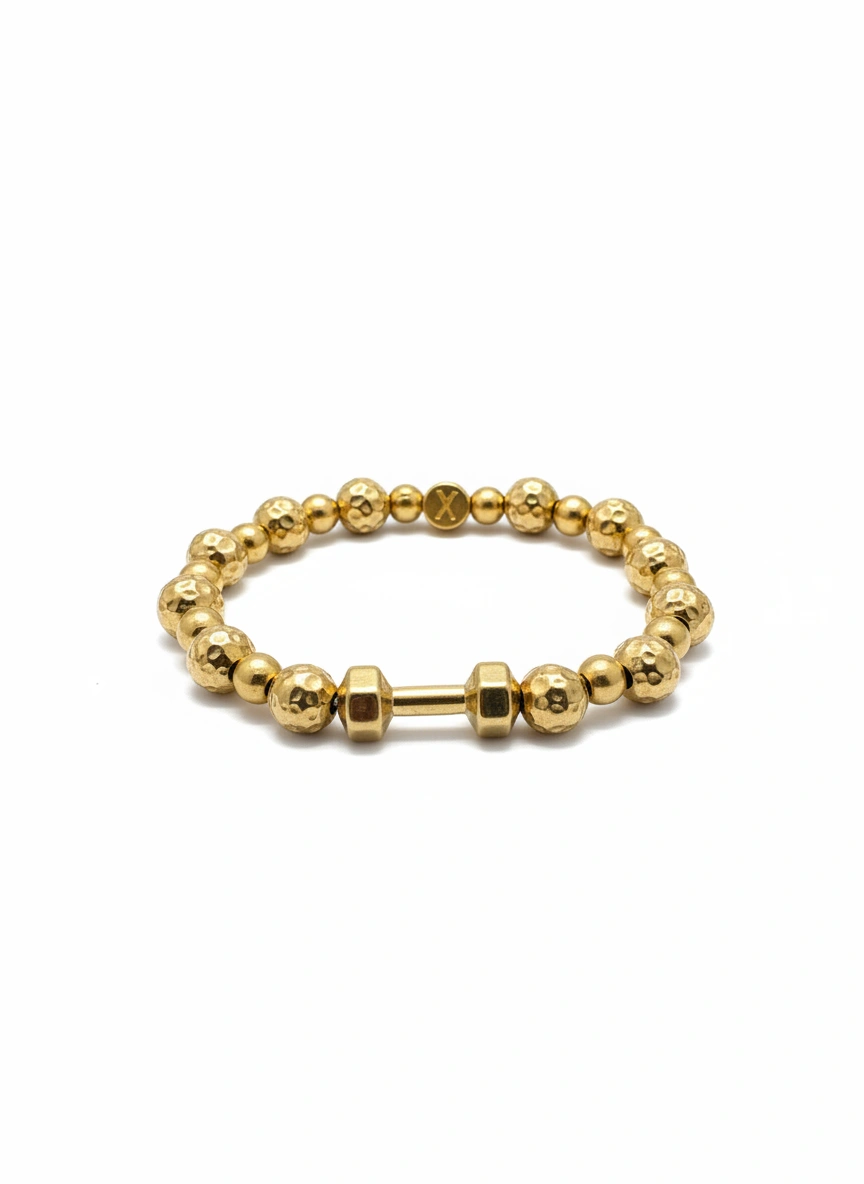 Deze armband uit de Gym Forty Five Collection belichaamt kracht in zijn puurste vorm. Het dumbbell-element staat symbool voor discipline, consistentie en mentale focus, waarden die niet stoppen buiten de gym, maar onderdeel zijn van een levensstijl.