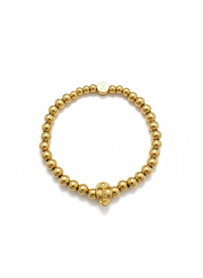 Geregen met vergulde kralen en afgewerkt met een iconische skull detail — elegant, maar met precies genoeg durf. Een piece voor de vrouw (of man) die luxe draagt met karakter. Perfect solo of juist krachtig in combinatie met andere Atelier X armbanden.