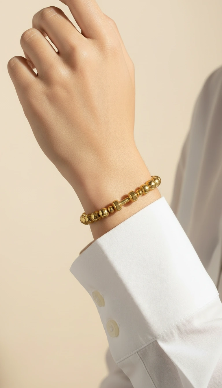 Golden Strength is het ultieme signature-piece binnen de Gym Forty Five Collection — een armband die kracht, elegantie en verfijning samenbrengt.