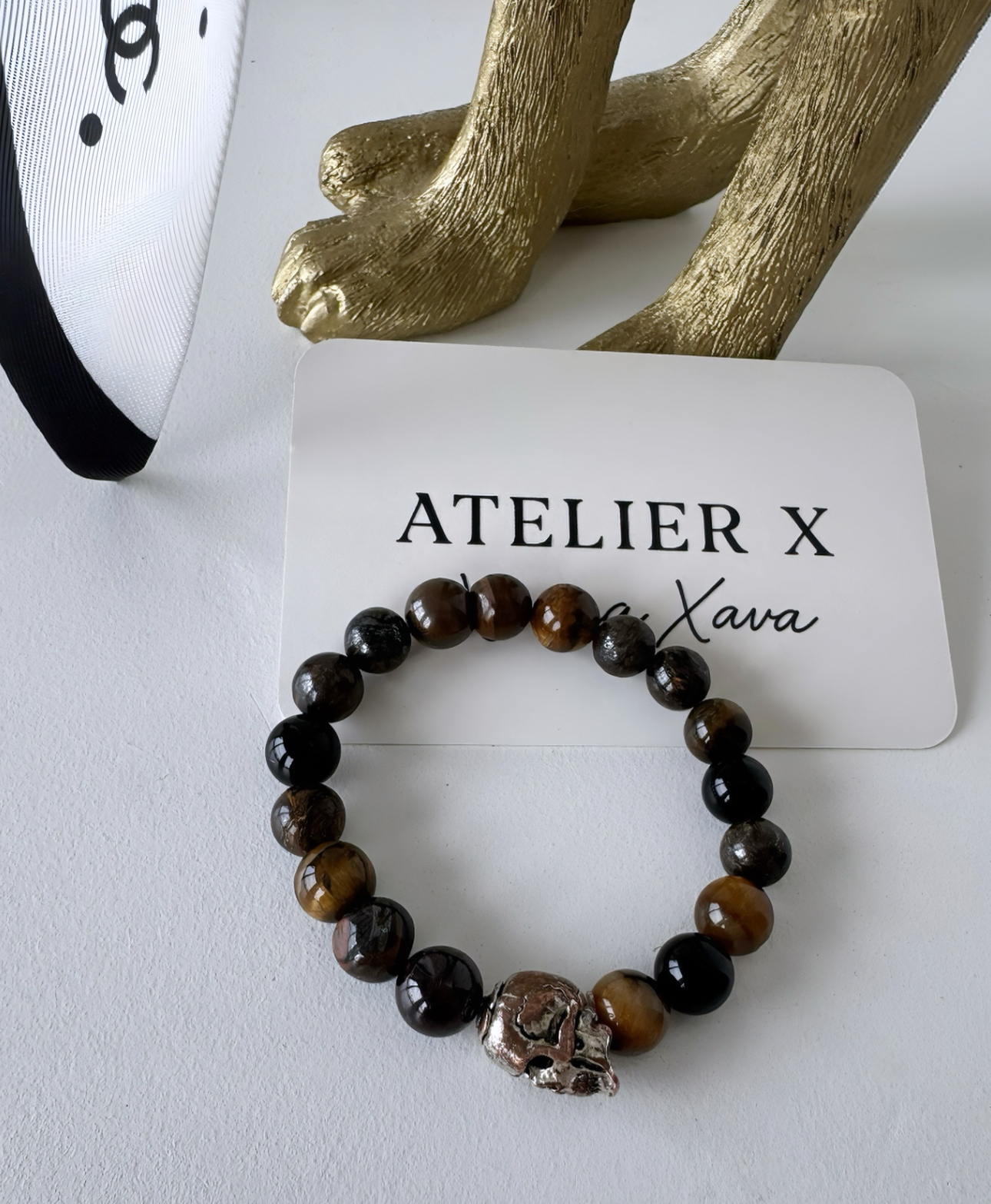 Deze armband is handgemaakt met echte natuurstenen en afgewerkt met bladgoud-accenten.
