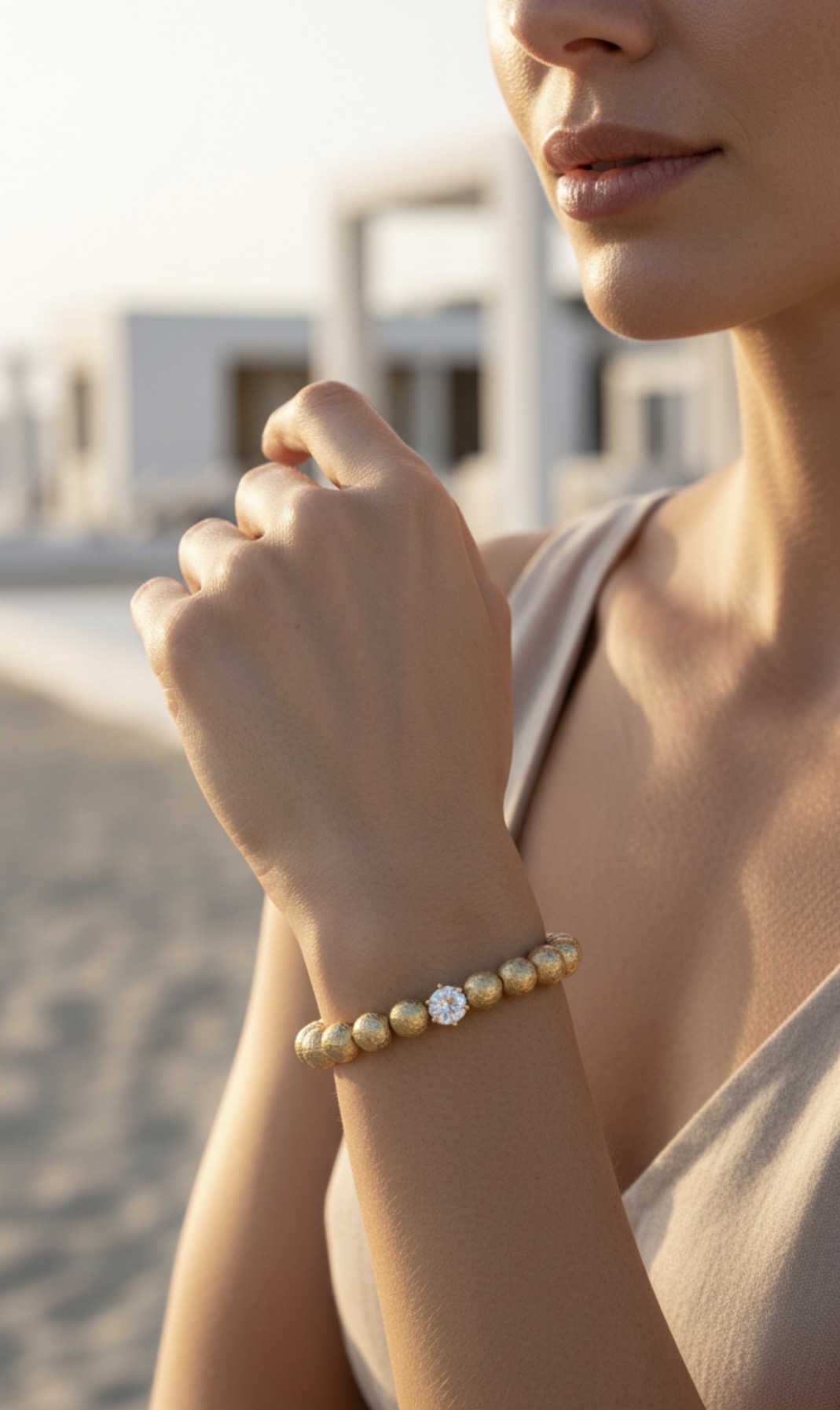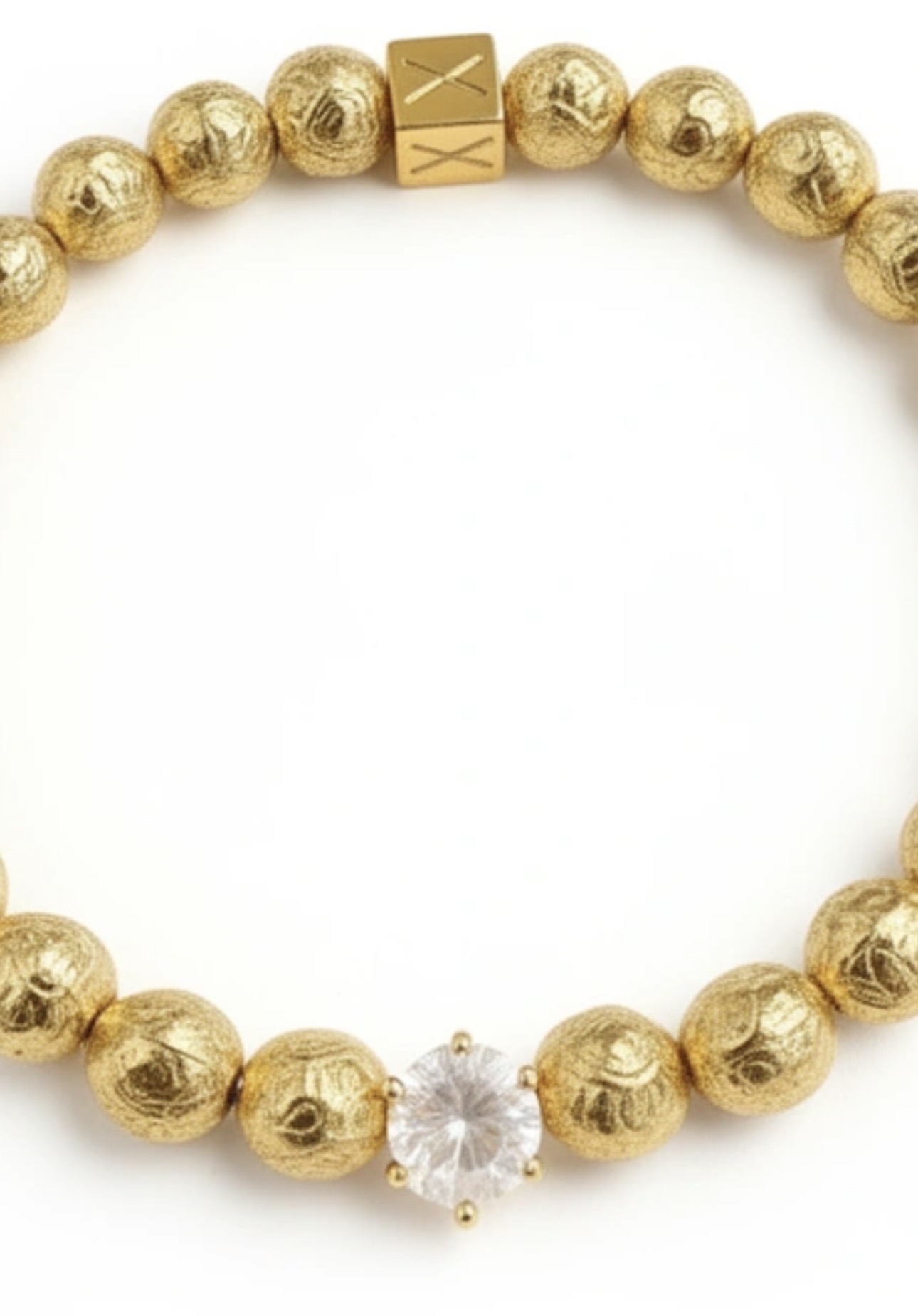 De warme gouden kralen worden subtiel versterkt door een heldere zirkonia steen die het licht vangt bij elke beweging.