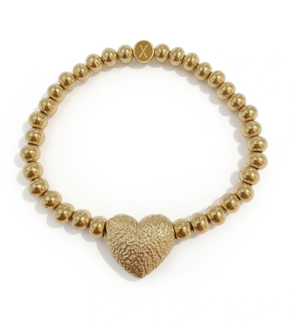 Het gouden hart vormt het middelpunt van deze verfijnde armband en staat voor verbinding, warmte en kracht.