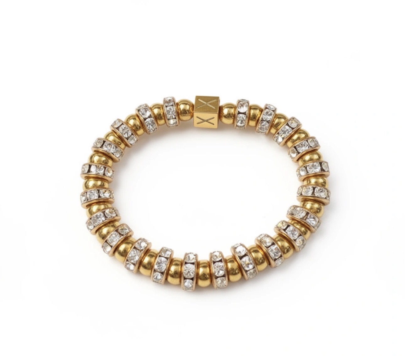 De combinatie van gouden kralen en sprankelende zirconia details geeft deze armband een luxe look, perfect voor elke gelegenheid.